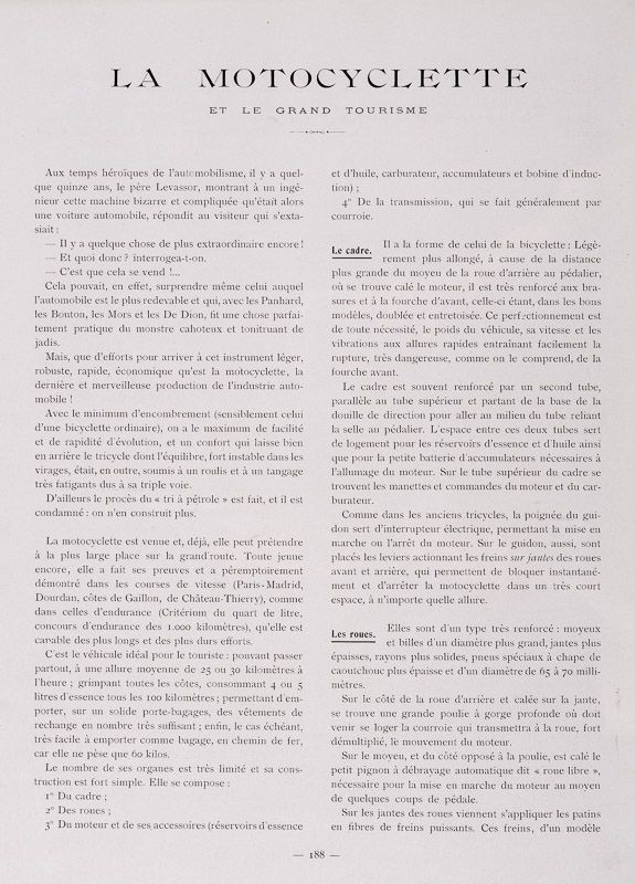 A beautifully presented volume of an early 20th century travel French magazine. Contains articles on touring by the nascent modes of travel offered by the automobile and motorcyle, travelogues, accounts of distant and not-so-distant lands and regions. It offers the modern reader a glimpse of middle class French life during the Belle Époque.
