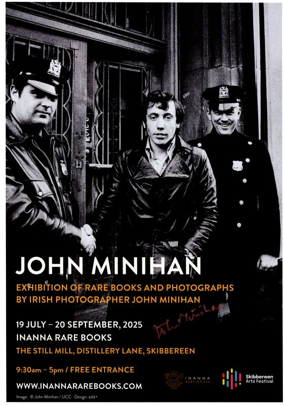 Signed Poster from John Minihan’s Inanna Rare Books – Exhibition at The Still Mill, Skibbereen (July-September 2025). One of only a few Posters of John’s famous New York Precinct – Handshake, signed by John Minihan during his reading at the Masonic Hall in Skibbereen.