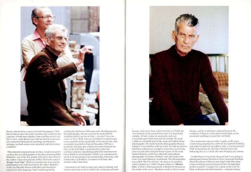 2001. Quarto. Fantastic 8-page article with beautifully reproduced colour-photographs of a happy Samuel Beckett. Softcover. From the personal library of John Minihan !