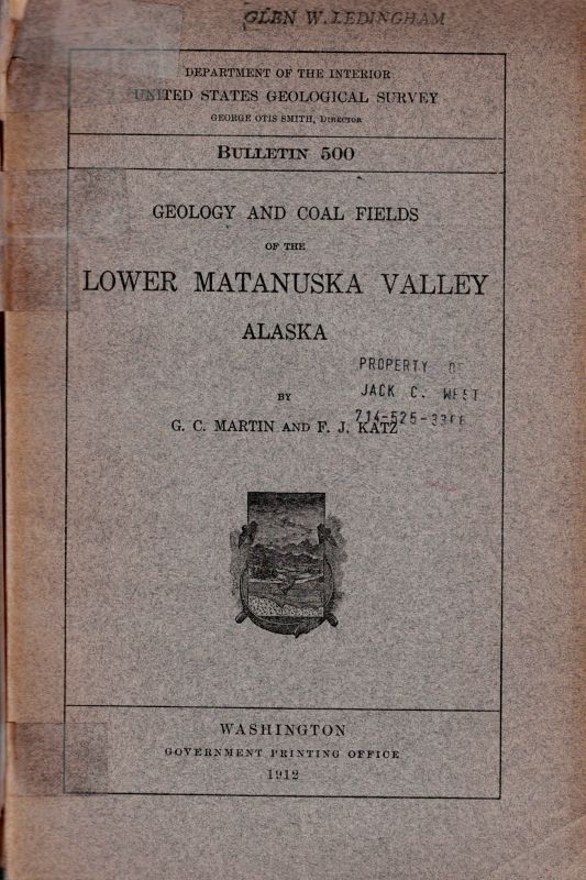 Geology and Coal Fields of the Lower Matanuska Valley, Alaska. [Provenance: This rare Pamphlet with FIVE (!) large Folding Maps of the Matanuska Valley, was given to W.D.Gill by american geologist Glen W. Ledingham (Gulf Oil)].