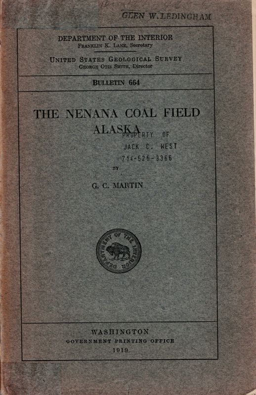 The Nenana Coal Field, Alaska. [Provenance: This rare Pamphlet with NINE (!) large Folding Maps of the Nenana Region, was given to W.D.Gill by american geologist Glen W. Ledingham (Gulf Oil)].