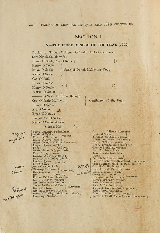 Includes content such as: Glasdrummond Lake / Creggan Graveyard and O Neil Vault / Genealogy of the Johnstons of the Fews MacMurphys / Gaelic Genealogical table of King James I / etc.
