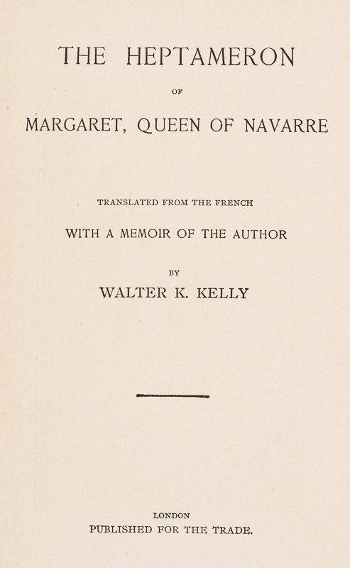 The Heptameron of Margaret, Queen of Navarre. Translated from the French with a Memoir of the Author by Walter K. Kelly.