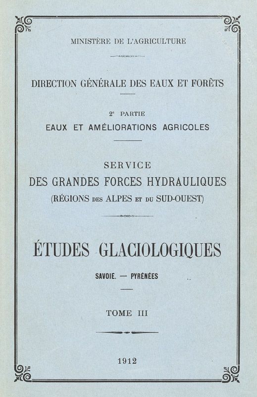 Service des Grandes Forces Hydrauliques. [Region des Alpes / Glacier de Gébroulaz / Observations Glaciaires dans les Pyrénées / Renseignements Historiques sur les Glaciers: Le Massif du Mont-Blanc etc. / Glacier de la Breche de Roland / Glaciers de Gavarnie etc.]