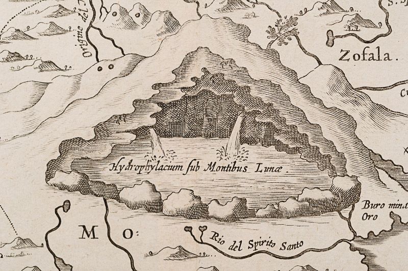 Kircher, Hydrophylacium Africae Precipuum, in Montibus Lunae Situm, Lacus et Flu