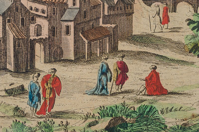 A titular cartouche floats above the magnificent city and a list of 23 numbered legends lies beneath the wonderful scene.