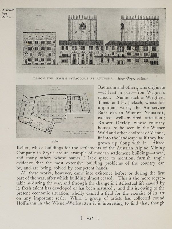 Illustrations inlcude for example: “Morning” – Working Cartoon for a Mural Decoration by Georg Clausen / The Houses of Parliament as Existing and Mr.Shaw’s Designs / St.Magnus London Bridge & St.Stephen Walbrok – Drawn for “Architecture” by Keith Murray / Detail of the Ornamental Lake in Boboli Gardens / “St.Paul’s from the Old Post Office under Demolition” after an etching of Frank Brangwyn / Public Bathhouse, Hilversum – by W.M.Dudok, Architect / etc. etc.