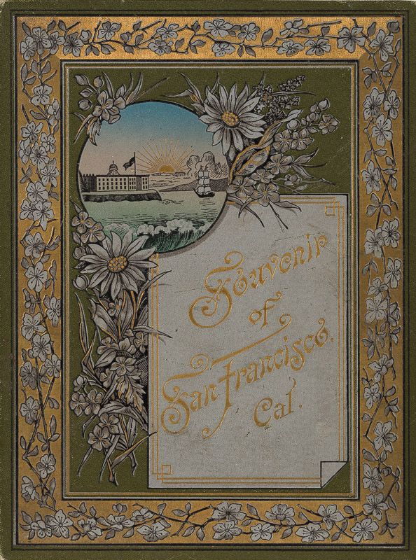 Included are for example the following images: View of San Francisco, formerly Yerba Buena in 1846-1847 (View when taken possession by U.S. and before the discovery of Gold) / Birds Eye View of San Francisco & Vicinity in 1894 / Birds Eye View of City Hall & Hall of Records / Union Depot and R.R. Ferry Landings / View of the Bay from Market Street Ferry Landing / Palace Hotel / Baldwin Hotel / Hotel Pleasanton (Sutter & Jones) / The California Hotel (Bush Street near Kearney Street) / Crocker Building (Market Street & Montgomery Street looking West) / Mills Building / Chronicle Building / The Mutual Life Building / Mercantile Library Building / Union Club / California Academy of Sciences (Market Street & Forth Street) / Alcazar Hall and Theatre (O’Farrell Street near Stockton) / Pioneer Hall / Market Street (North East from Seventh) / California Street (West from Sansome) / Merchants Exchange (California Street) / Safe Deposit Block / San Francisco Stock Exchange (Pine Street below Montgomery) / United States Branch Mint (5th & Mission Street) / Park, Beach & Cliff House Railway with PAcific Ocean & Cliffhouse / United States Port, Alcatraz Island in San Francisco Bay / Fort Point & Golden Gate (Fort Winfield Scott, Entrance to San Francisco Bay) / St.Ignatius Church & College Hayes St. & Van Ness Ave. / Mission Dolores, Dedicated 1776 / Presidio U.S.Reservation / The Presidio, Officers Quarters and Music Stand / The Presidio Road Approaching Fort Scott / Golden Gate Park – Drive & Pavilion – Conservatory and Environs / Golden Gate Park / The Children’s Playground at Golden Gate Park / Conservatory & Tunnel under a Drive / Strawberry Hill and Lake, Golden Gate Park / California Street Hill, Residences / San Francisco Art Association Building / Crocker’s Stanford’s / Sutro Heights / Cliff House & Vicinity / Beach, Cliff House, Seal Rocks / Railroad to Sutro Heights showing the Golden Gate / The Chinese Quarters – Fancy Goods Store – Restaurant – Alley – Interior of Restaurant – Grocery Store – Chinese Ladies – Joss House – Chinese Merchants – Interior of Joss House.