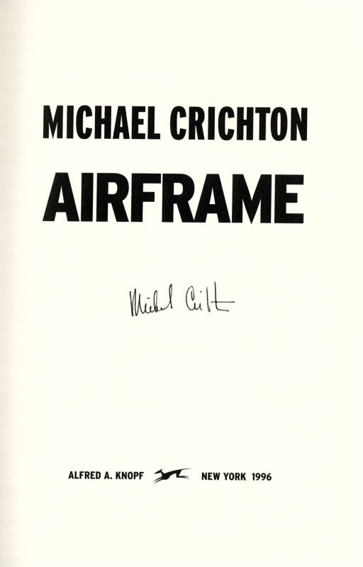First edition. New York, Alfred A. Knopf, 1996. 17 x 25 cm. 351 pages. Original Hardcover with original dustjacket in protective collector’s mylar. Signed by Michael Crichton on the titlepage. Near fine condition. Wrapped in protective mylar.