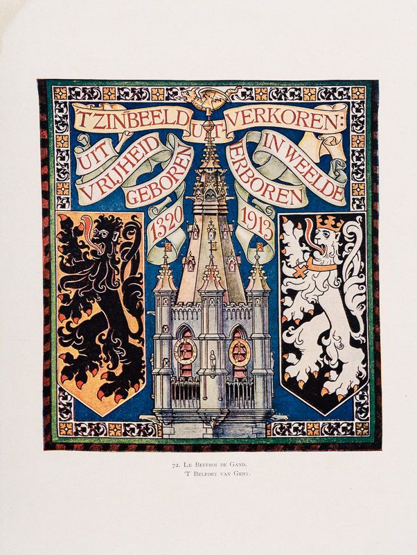 Drapeaux, Bannieres – Souvenir de la ‘Vieille Flandre’ (Exposition Universelle et internationale de Gand 1913) / Vlaggen & Wimpels – Aandenken van “Oud-Vlaendren” (Wereldtentoonstelling van Gent 1913).: I – Drapeaux aux Armes des Villes de Flandre / II – Drapeaux aux Armes de Seigneurs / III. Drapeaux Représentant des Images Légendaires ou des Emblèmes / IV. Drapeaux et Bannières de Corporations / V. Drapeaux Portant les Types des Saints / VI. Drapeaux Reproduisant des Einseignes //