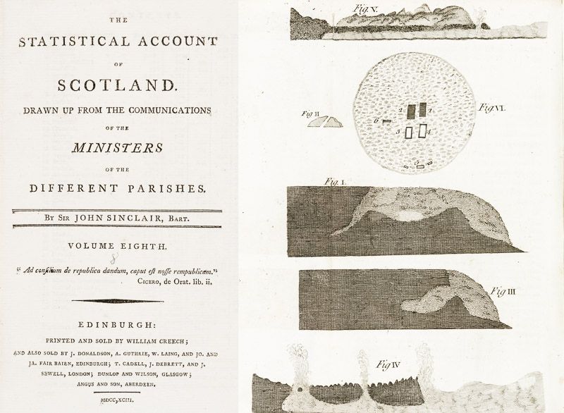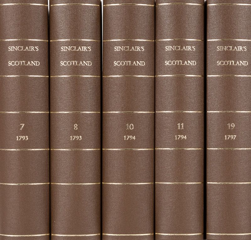 The Statistical Account of Scotland. Drawn up from the Communications of the ministers of the Different Parishes. Collection of five Volumes including Volumes 7 (1793), 8 (1793), 10 (1794), 11 (1794) and 19 (1797). Including the County of Fife, County of Ayr, Syno of Glasgow etc.