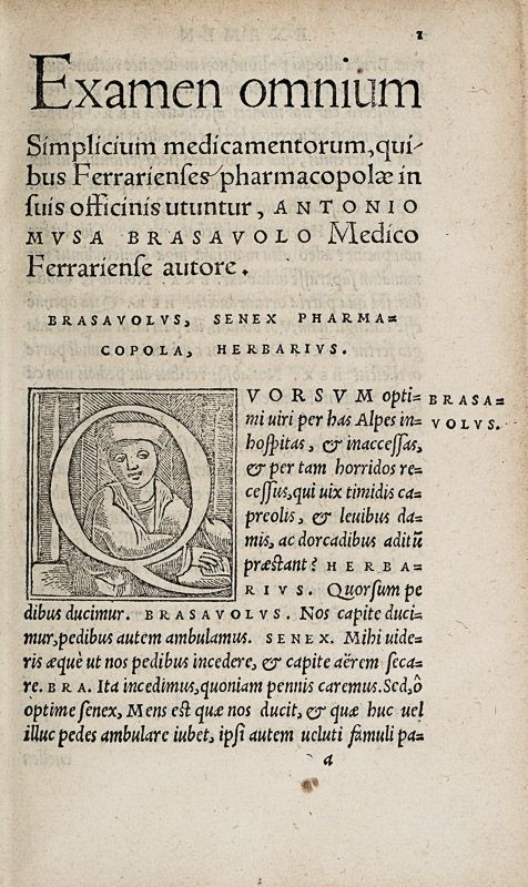 It is highly likely that Schreiber has received the work from his new friend Valerius Cordus. It is important to understand that medicinal plants (Simples / Medicamenta Simplicia) were the main interest in Valerius Cordus’ studies (see p.292 of Ersch and Gruber’s 1829 published ‘Encyclopedia of Science and Art’). This would explain the two volumes being bound together since Brasavola’s Examen is the first monumental publication on simples, and Valerius Cordus probably knew that his father Euricius Cordus and Antonio Musa Brasavola shared the same teacher in Ferrara, italian humanist and physician Niccolò Leoniceno.