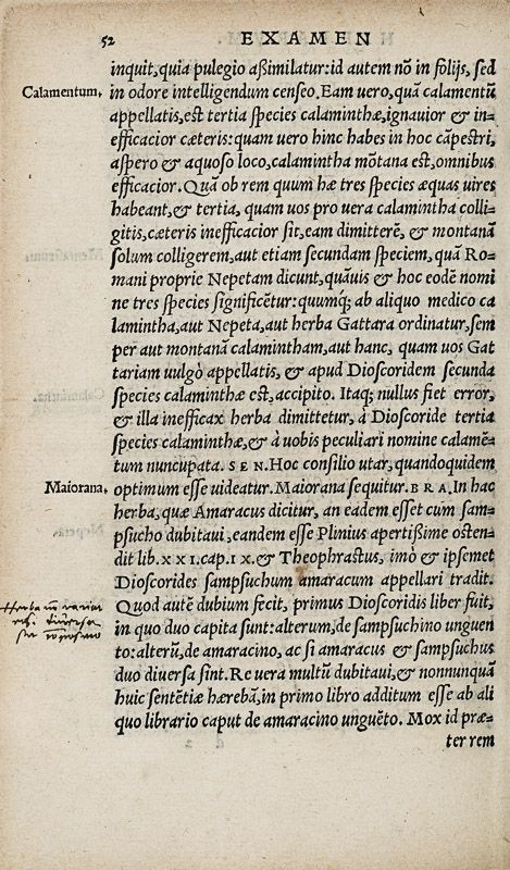 Some of the Annotations in the Examen reference the Botanologicon; especially on page 502 of the Examen in which Brasavola denies previous knowledge of the Botanologicon when writing his work. Edward Lee Greene (and Frank N. Egerton, ed.) already found page 502 of Brasavola’s Examen important enough to illustrate the undeniable connection of ‘Botanologicon’ and ‘Examen’ by including a full translation from latin of the long passage of Brasavola’s denial (see Volume II, p.696/697 of ‘Landmarks of Botanical History’).