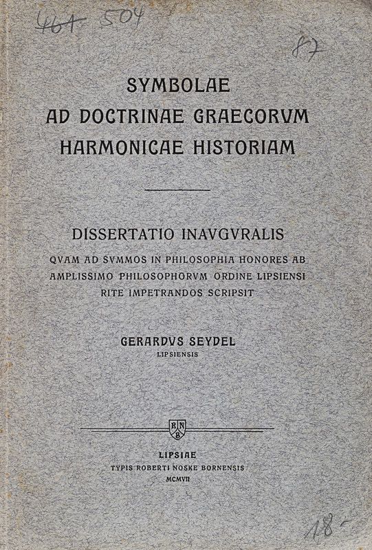 Seydel, Symbolae ad doctrinae graecorum harmonicae historiam.