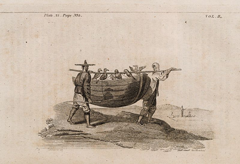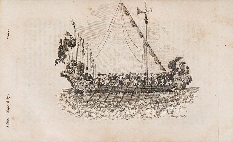This multi-volume work was taken chiefly from the papers of Lord Macartney and from the papers of Sir Erasmus Gower, who was Commander of the expedition. Sir Joseph Banks, the President of the Royal Society, was responsible for selecting and arranging engraving of the illustrations in this official record.
