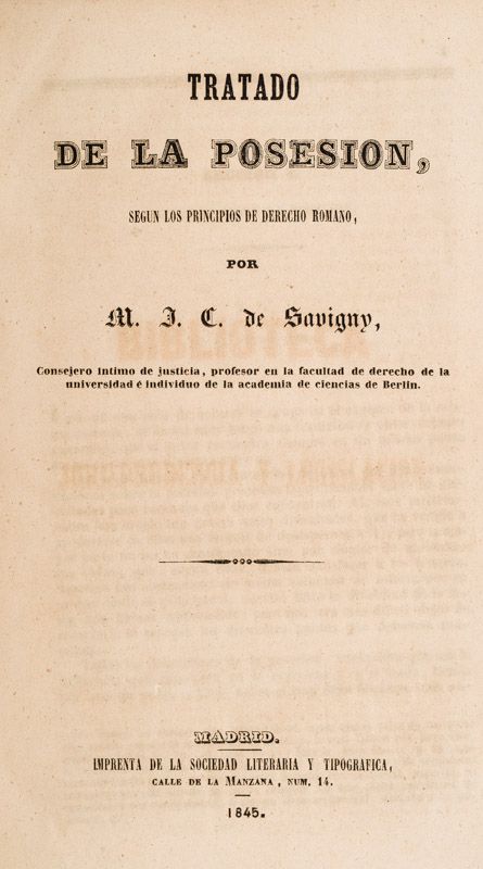 [First spanish edition of Savigny’s “Das Recht des Besitzes”]