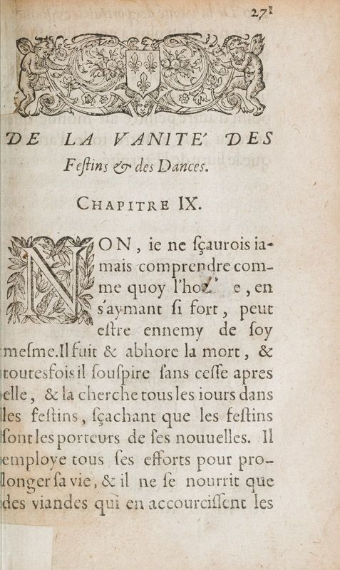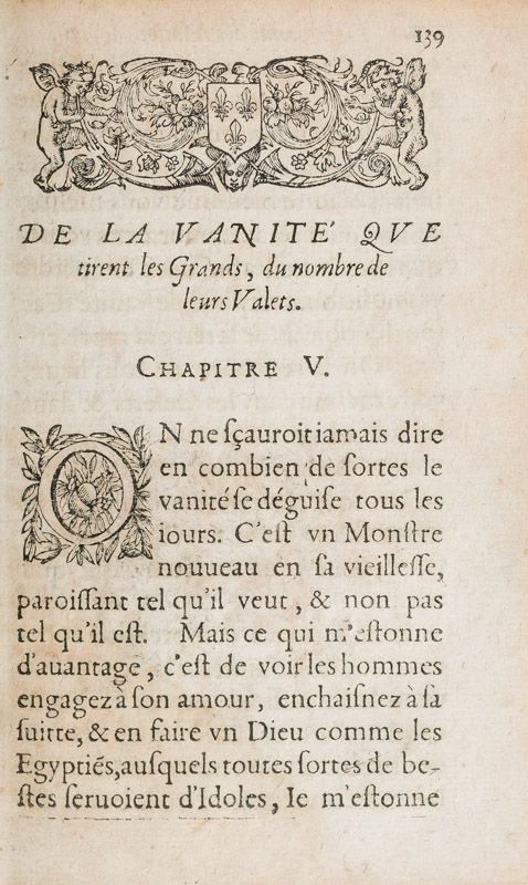 De la vanité que les hommes tirent de leur naissance – de la vanité des grandeurs et des richesses – De la vanité des charges – de la vanité des palais et des maisons de plaisance – De la vanité des habits – De la vanité de la renommée – De la vanité des portraits et des statues – De la vanité des festins et des dances – De la vanité des sciences – De la vanité de la fortune et des favoris – De la vanité de la valeur – De la vanité de la beauté – De la vaine curiosité de voir le monde.