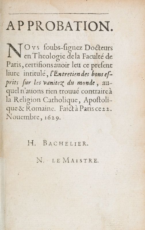 L’Entretien des Bons Esprits sur les Vanitez du Monde.