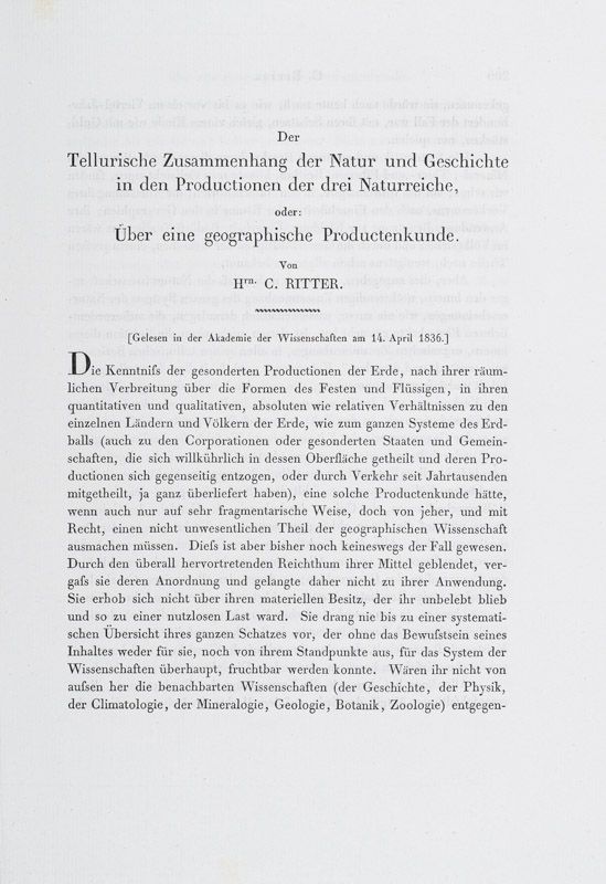 Der tellurische Zusammenhang der Natur und Geschichte in den Productionen der drei Naturreiche, oder: Über eine geographische Productenkunde.
