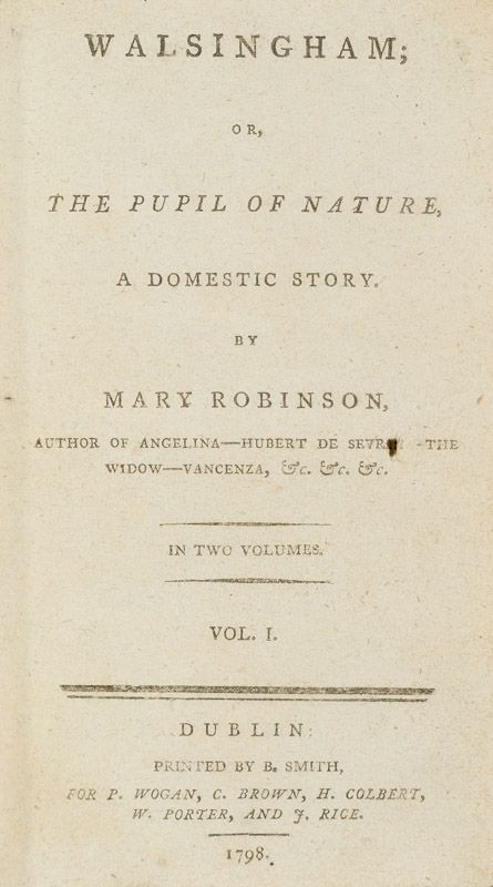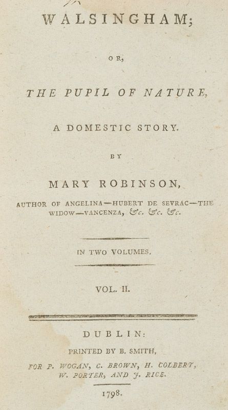 Walsingham; or The Pupil of Nature, A Domestic Story. By Mary Robinson, Author of Angelina – Hubert de Sevrac – The Widow – Vancenza, &c. &c.&c.