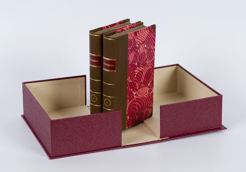 First Irish Edition. In Two Volumes (complete Set). Dublin, Printed by B. Smith for P.Wogan, C.Brown, H.Colbert, W.Porter and J.Rice, 1798. Octavo (12 cm x 17,5 cm). 336, 322 pages. Hardcover / Modern half-leather bound to the style of the 18th-century with spinelabels. Both Volumes in protective Mylar and now housed in a bespoke Solander Box. Very good condition with some minor signs of wear only to the edges and two tiny lesions to the titlepage of the first Volume. Faded dampstain to some pages of the lower bookblock of Volume II. While the bookblock is generally used and has the occasional very faint stain and a minor tear to a page, the set is in very good or even better condition ! Extremely scarce !