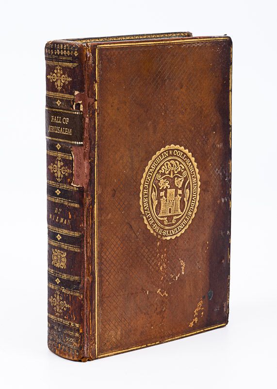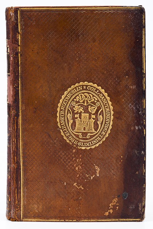 Three Volumes in One. London, John Murray, 1822. Octavo. VII, 167 pages / VII, 168 pages / IV, 162 pages. Hardcover / Original full leather in Mylar. Stunning, blind-stamped armorial binding of Trinity College Dublin: “Reg. Elizabeth Juxta Dublin Coll. Sanctae Individuae Trinitatis”. Gilt lettering and ornament, new spinelabel. With Premium Bookplate – Prize for “Jacobo Freke” in the year 1828. Very good condition with some minor signs of wear only and a faded dampstain to the first 34 pages. Minor chip to spine. From the library of Daniel Conner (Connerville / Manch House), with the name of Henry Longfield Conner (Manch) to half-title and titlepage.