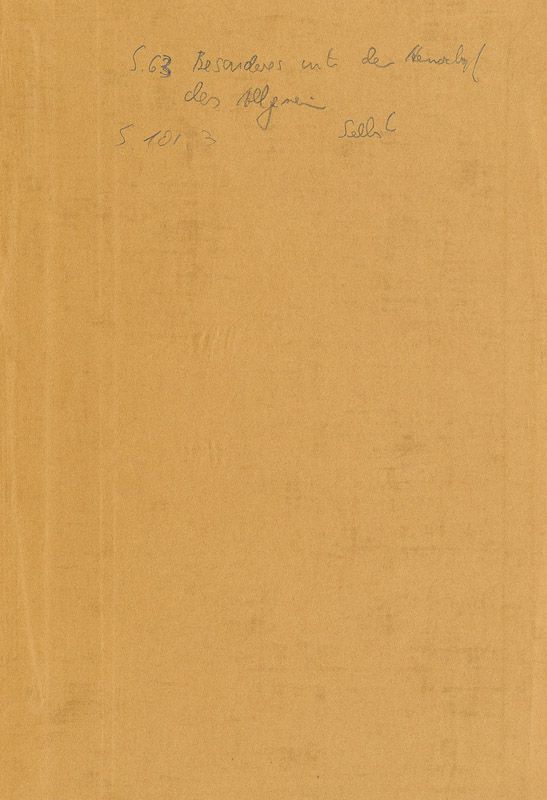 Es folgen zahllose weitere Anstreichungen, Markierungen und auch ein Verweis mit kurzem Kommentar im hinteren Einbanddeckel zu Stellen auf Seite 63 und Seiten 101.