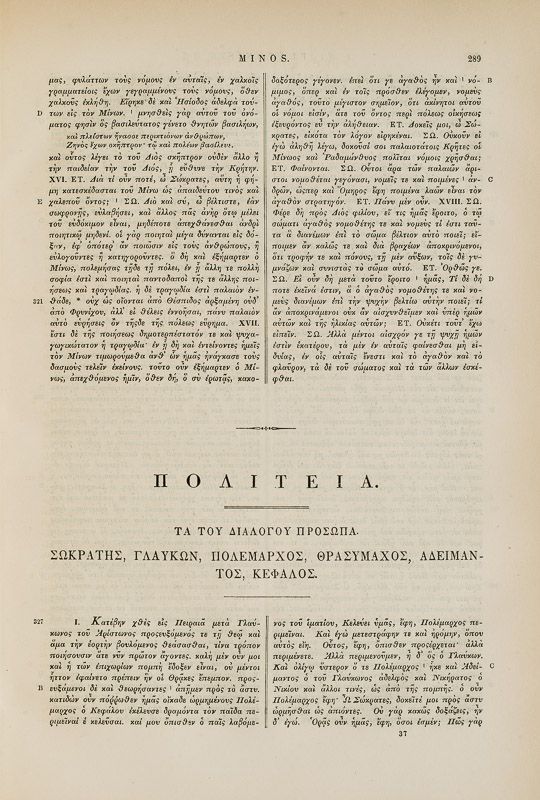 Euthyphro / Apologia Socratis / Platonis Phaedo / Platonis Theaetetus / Platonis Sphista / Platonis Euthydemus / Platonis Protagoras / Platonis Cratylus / Platonis Gorgias / Platonis IO / Platonis Philebus / Plantonis Meno / Platonis Alcibiades I. / Incerti Auctoris Alcibiades II. / Platonis Charmides / Platonis Laches / Platonis Lysis / Platonis Menexenus / Platonis Politicus / Incerti Auctoris Minos / Platonis De Republica Lib. I – X / Platonis De Legibus Lib I. – Lib. XII / Incerti Auctoris Epinomis / Platonis Timaeus / Timaei Locri De Anima Mundi / Platonis Critias / Platonis Parmenides / Platonis Symposium / Platonis Phaedrus / Platonis Hippias Maior / Epistola I – XIII / Incerti Auctoris Axiochus / De Iusto Dialogus / De Virtute Dialogus / Incerti Auctoris Demodocus / Incerti Auctoris Sisyphus / Incerti Auctoris Eryxias / Incerti Auctoris Clitophon / Incerti Auctoris Definitiones / Scholia in Apologiam / Scholia in Euthyphronem / Scholia in Critonem et Phaedonem / Scholia in Theagem / Scholia in Amatores / Scholia in Theatetum / Scholia in Sophistam / Scholia in Euthydemum / Scholia in Protagoram / Scholia in Hippiam Minorem / Scholia in Cratylum / Scholia in Gorgiam / Scholia in Ionem / Scholia iin Philebum / Scholia in Menonem / Scholia in Alcibiadem Primum / Scholia in Alcibiadem Secundum / Scholia in Charmidem / Scholia in Lachetem / Scholia in Lysin / Scholia in Hipparchum / Scholia in Menexenum / Scholia in Politicum / Scholia in Minoem / Scholia in Rempulicam Lib. I – Lib. X / Scholia in Leges Lib. I – Lib. XII / Scholia in Epinomida / Scholia in Timaeum / Scholia in Timaeum Locrum / Scholia in Critiam / Scholia in Parmenidem / Scholia in Symposium / Scholia in Phaedrum / Scholia in Hippiam Maiorem / Scholia in Epistolas / Scholia in Axiochum / Scholia in Dialogum Iusto / Scholia in Sisyphum / Scholia in Eryxiam / Scholia in Clitophontem /