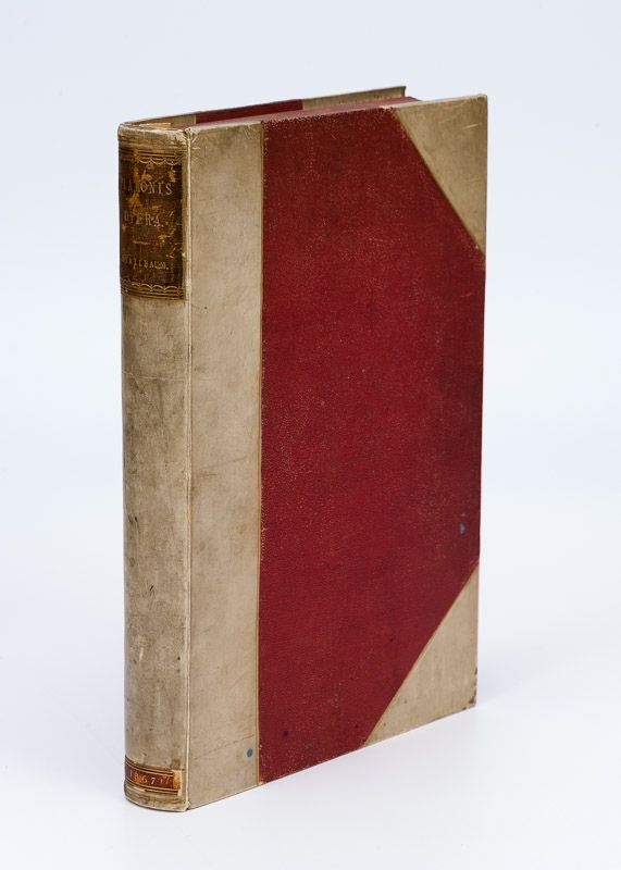Editio Stereotypa C. Tauchnitiana. Nova Impressio. Leipzig / London, Holtze/Dulau, 1867. 4° (20 cm x 28 cm). XV, 725, 3 unnumbered pages. Hardcover / Original quarter Vellum with beautiful marbled endpapers and the original miniature booksellers-label from Sanders & Co. (Oxford) to pastedown. Original Greek Edition in a wonderful, firm, quarter vellum binding with vellum corners. With only very few notes and clean annotations.