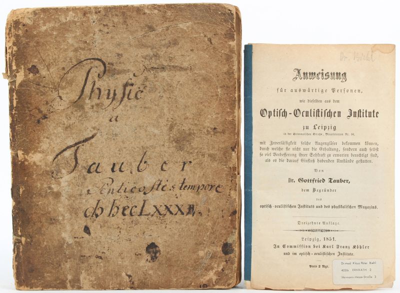 1800 wurde Gottfried Tauber durch den Magistrat der Stadt Leipzig als Lehrer der Mathematik an der Thomasschule angestellt, die bis dahin noch keinen Mathematiklehrer hatte; im gleich Jahr gründete er das Optisch-Oculistische Institut, in dem er ein physikalisches Magazin aufbaute, das aus allen Arten mathematischer, physikalischer, astronomischer, optischer […] Instrumente bestand, die unter seiner Aufsicht gebaut wurden.