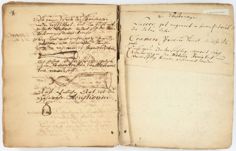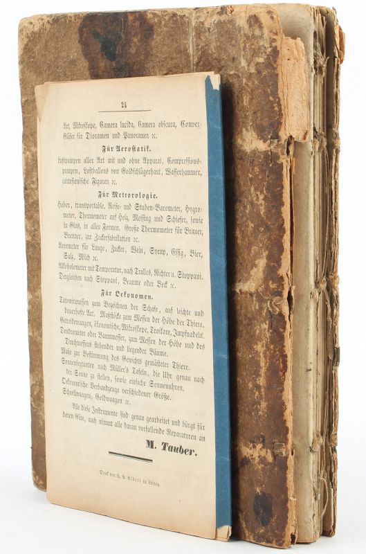 Altenburg / Leipzig, Gottfried Tauber, 1784 – 1851. Octavo / Quarto. Pagination: Manuscript – 146 pages with numerous drawings (some in ink and some in watercolour) / Pagination: Pamphlet: Portrait: The Portrait is framed, a tear in the portrait is visible / Manuscript: Both Hardcover boards of the manuscript are cleanly detached and rubbed with some minor damages. Drawings and interior manuscript notations very good. Very good condition with only minor signs of wear.