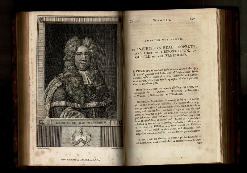 The Rare Edward Christian Edition. Four Volumes (complete set). London, A. Strahan and W. Woodfall, Law-Printers to the King’s most excellent Majesty, for T. Cadell, in the Strand, 1793,1794,1795. Octavo. Pagination: Volume I: X, [6], III, [1], 487 pages / Volume II: [8], 520, XX pages / Volume III: Frontispiece-Portrait, [8], 455, XXXV, [1], 16 pages with three more portraits bound-in / Volume IV: [8], 443, VIII, [72] pages. With four Portraits in total and one large folding table showing the “Table of Descents”. The Portraits which are bound into Volume III of the set are: I. Portrait of British Judge “William Murray, 1st Earl of Mansfield” / II. Portrait of “Lord Chief Baron Gilbert” [Sir Jeffrey Gilbert, Lord Chief Baron of the Exchequer in both Ireland and England] / III. Portrait of english Judge and Member of Parliament, Sir John Comyns, Knt. / IV. Portrait of english lawyer and Lord High Chancellor Philip Earl of Hardwicke. Hardcover / Original edition of the 18th century, rebacked by a master-binder with 20th century leather-spines in the style of the 18th century. This extremely rare edition Edward Christian – Edition of Blackstone, with the last corrections before Blackstone’s death, published for the first time by Edward Christian in the years 1793-1795. This set is used with some minor spotting to pages but overall a very desirable and important version of Blackstone’s commentaries on the Laws of England. [The set comes also with a stunning Limited Edition of the four-volume- Reprint of the First Edition of Blackstone’s Commentaries (1766)].