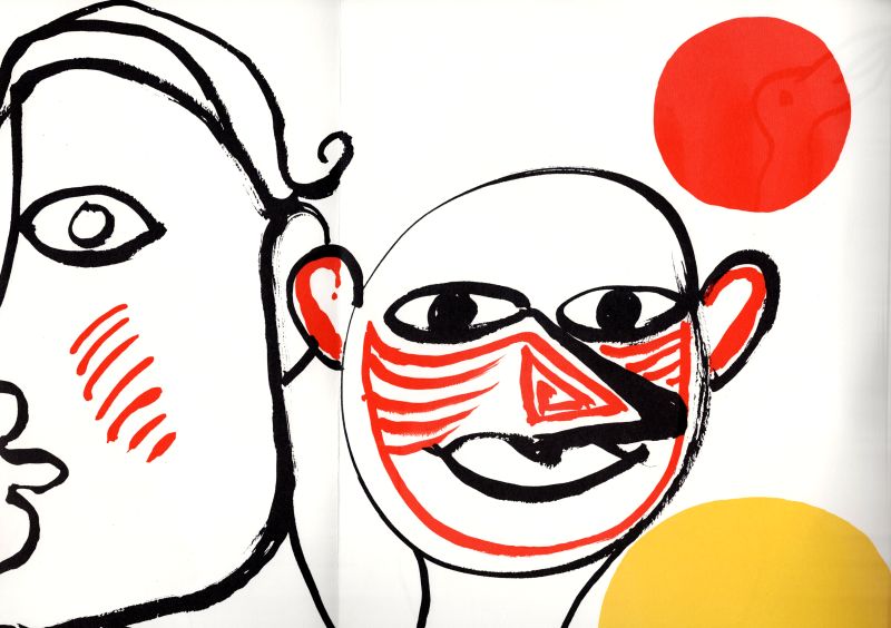 First Edition. Paris, Maeght Editeur [Aimé et Marguerite Maeght], 1976. Folio (27.8 cm wide x 37.8 cm high). 24 pages plus lithographed Cover and 4 pages of suite with Calder’s portrait and Jean Davidson’s homage (In this edition the Text reverts back to being paginated excluding the cover). This Volume also includes a section of colour-photographs of Mobile-Sculpture by Calder. Original, illustrated softcover / brochure. Excellent condition with only minor signs of wear. All Lithographs in excellent condition.