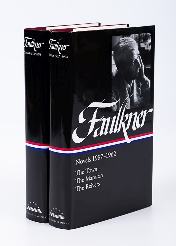 Fantastic Set of William Faulkner’s Works which were published within the Library of America. [All Books in “As New Condition” with Mylar applied]. Included are: I. Novels 1926-1929 – Soldier’s Pay – Mosquitoes – Flags in the Dust – The Sound and the Fury (LOA Volume 164) / II. Novels 1930 – 1935 – As I Lay Dying – Sanctuary – Light in August – Pylon (LOA Volume 25) / III. Novels 1936-1940 – Absalom, Absalom ! (LOA Volume 48) / IV. Novels 1942-1954 (LOA Volume 73) / V. Novels 1957 – 1962 – The Town – The Mansion – The Reivers (LOA Volume 112) //