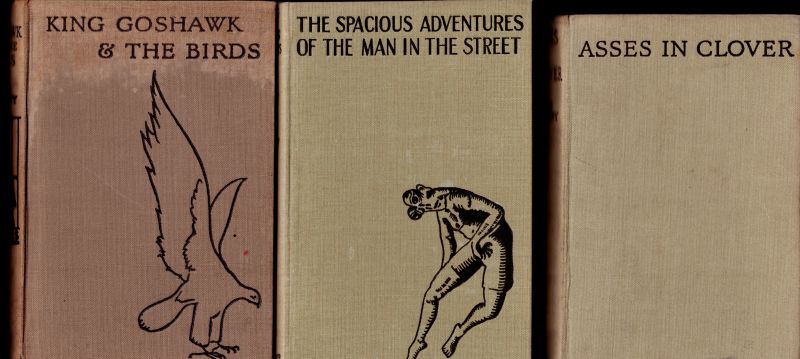 [The Cuanduine Trilogy] Volume I: “King Goshawk and The Birds” (First Edition. London, Macmillan, 1926) / Volume II: “The Spacious Adventures of the Man in the Street” (First Edition. London, Macmillan, 1928) / Volume III: “Asses in Clover” (First Edition. London, Putnam, 1933).