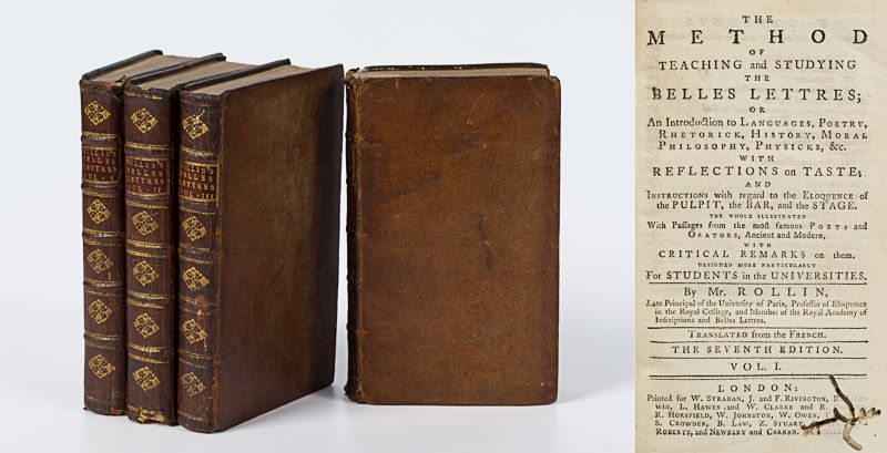 The Method of Teaching and Studying The BELLES LETTRES ; Or An Introduction to Languages, Petry, Rhetorick, History, Moral Philosophy, Physicks, &c. with Reflections on Taste ; And Instructions with regard to the Eloquence of the Pulpit, the Bar and the Stage. The Whole Illustrated with Passages from the most famous Poets and Orators, Ancient and Modern, with Critical Remarks on them. Designed more particularly for Students in the Universities. By Mr. [Charles] Rollin, Late Principal of the University of Paris, Professor of Eloquence in the royal College, and Member of the Royal Academy of Inscriptions and Belles Lettres. Translated from the French.