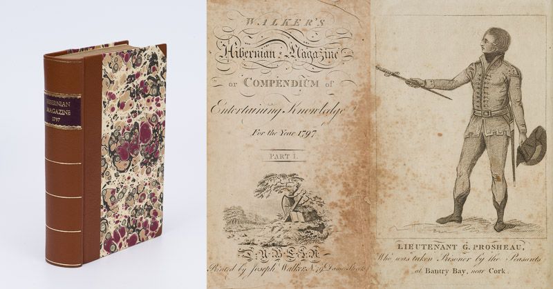 Roger O’Connor & Arthur O’Connor – Collection. A set of five Titles (in six Volumes) from the Library of Henry Daniel Conner and Daniel Conner at Manch House (Ballineen / Dunmanway]. Rare Volumes connected to the History of the Brothers Roger O’Connor [″Chronicles of Eri”] and Arthur O’Connor [″United Irishmen”]. From the 18th-19th century library at Manch House. The collection includes: 1. [O’Connor, Roger] Captain Rock – Letters to His Majesty, King George the Fourth. [This is the Volume owned by the Conner – Family of Manch House and it bears the Bookplate of Henry Daniel Conner] / 2. O’Connor, Arthur [United Irishman] & O’Connor, Roger [Irish Nationalist and Publisher of The Chronicles of Eri] / 3. G.B. O’Connor – O’Connor, G.B. Irish and other Fragments. [Includes the following essays: Irish Ethical Problems / Marshal Saxe and Diminishing Populations / The Irish Republican Demand / The Anglo-Saxon Myth / Irish Facts and Foreign Fictions / The Irish and the Law / Some Anglo-Irish Writers / A National Delusion / The Irish Lord Lieutenant]. Dublin, Hodges, Figgis & Co., no year (c. 1920). Small Octavo. 73 pages. Original Softcover. Very good condition with only minor signs of external wear. A very rare book ! / 4. [O’Connor, Arthur / United Irishmen] Hayter-Hames, Jane. Arthur O’Connor, United Irishman. Cork, Collins Press, 2001. 24 cm. xi, 338 pages, 8 unnumbered pages of plates : illustrations, portraits. Original Hardcover with original dustjacket in protective collector’s mylar. Very good condition with only minor signs of external wear / 5. [Fox, Charles James] / [Arthur O’Connor] / Trotter, John Bernard [Late Private Secretary to Mr.Fox] Memoirs of the Latter Years of the Honourable Charles James Fox [with a lengthy report on a meeting with Irish Revolutionary Arthur O’Connor in Calais]. Third Edition. London, Printed for Richard Phillips, 1811. Includes a longer section in which John Bernard Trotter discusses a chance meeting of Fox with irish Revolutionary, Arthur O’Conno, in a section called the “Independent conduct towards Mr.O’Connor [Arthur O’Connor, brother of Roger O’Connor]: “An incident occured at Calais, which as it excited much remark, and roused a good deal of censure at the time, I shall advert to more length than would otherwise be necessary. It happened that Mr.Arthur O’Connor had arrived at the inn at which we stopped very shortly before. He waited on Mr.Fox, was received by him with that urbanity and openness which distinguished him, and was invited to dinner by him, which invitation he accepted of. It is is well known that, after a long confinement at Fort George, he, and some other Irish gentlemen, agreed with the Irish Government to expatriatethemselves for life. Mr.O’Connor was now on his way to Paris accordingly; when chance brought him to Quillac’s Inn, at the same time with Mr.Fox. His manners were extremely pleasing….” Trotter continues at length to elaborate on the meeting and conduct of Arthur O’Connor, their subsequent visit to the Theatre and three other times of meeting in Calais.