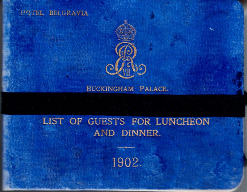Original Luncheon-Invitation-Ticket-List, published in Book-Form with original Ivory-Head-Pencil by Johann Faber (Bavaria), attached on the occasion of King Edward VII’s Coronation Dinner at : “Hotel Belgravia / Buckingham Palace” – Original Ticket-Book: “List of Guests for Luncheon and Dinner – 1902 for King Edward VII’s Guests Colonel F.M.Wardrop, C.B., Colonel Commandant Johann von Belnay, Lieutenant-Colonel Ludwig Koch and Captain Adalbert Guilleaume”.
