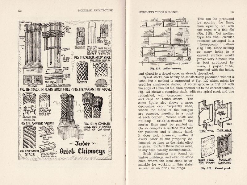 Detailed chapters on Wall Finishing and Painting, Materials and Methods, Mouldings and Carvings, Modelling Tudor Buildings, Cottages, Inns and Shops, Modelling Interiors, Churches and Cathedrals, etc.
