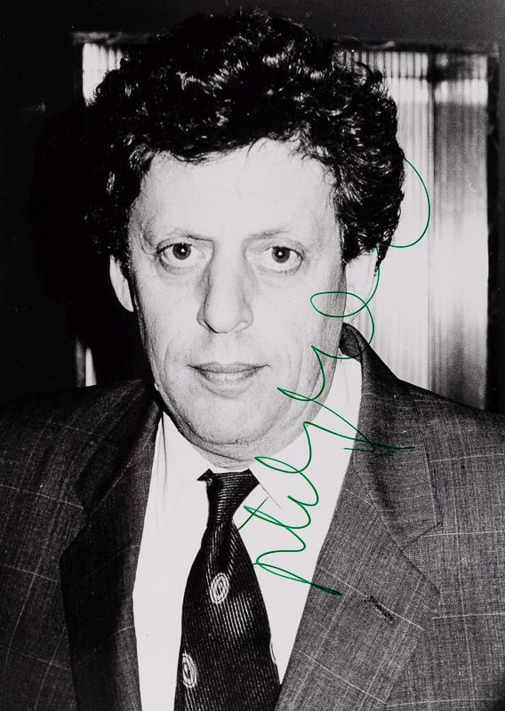 Original Portrait Photograph – signed in green ink by Philip Glass.