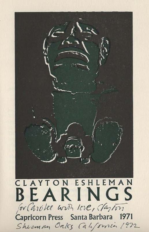 Bearings. [Two fantastic association copies of this limited edition / Both copies from the library of Carolee Schneemann / Both, beautifully inscribed by Clayton Eshleman to Carolee Schneemann and one copy with an annotation and several interesting textmarkings by Carolee Schneemann].