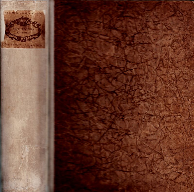 London, The Society of Architects, 1922 – 1923. Quarto (20.4 cm wide x 25.7 cm high). Pagination: IV, 630 pages with Illustrations throughout. Hardcover / Half-Parchment with original spine-label. In protective Mylar. Excellent condition with only very minor signs of wear.