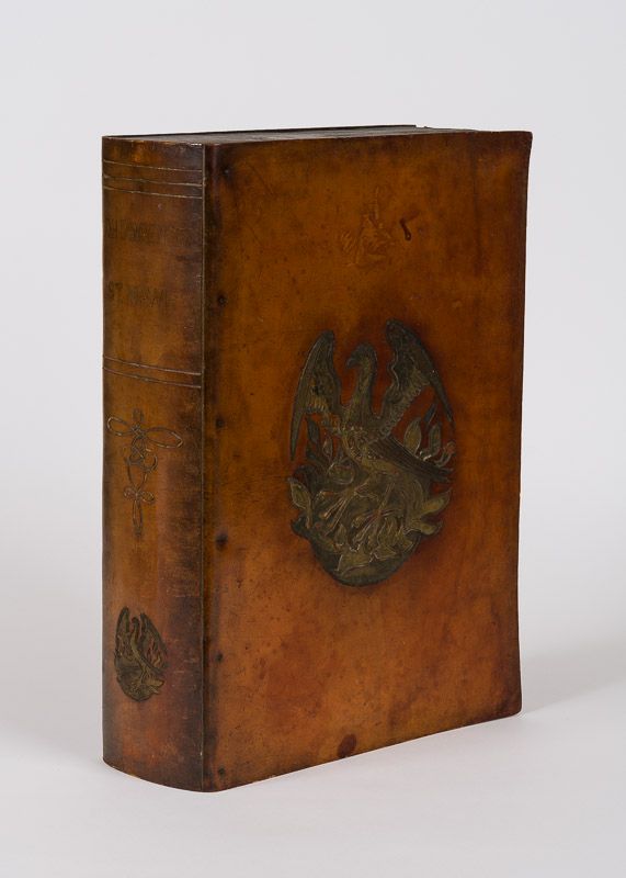 no place, c. 1930. Folio. Original Hardcover with leather covered boards. Hard to qualify this exceptional piece as Ephemera, but that is what it is. Very good condition with only minor signs of external wear. Dimensions are 45,5cm (high), 34cm (wide), 13cm (thick).