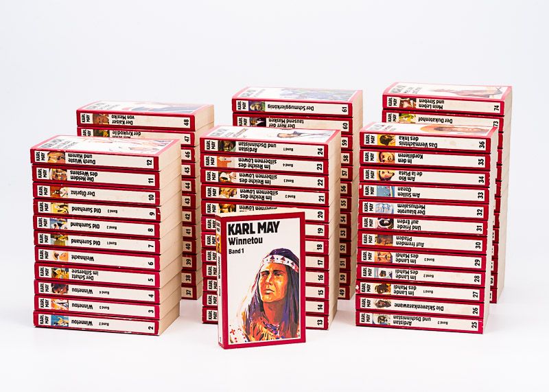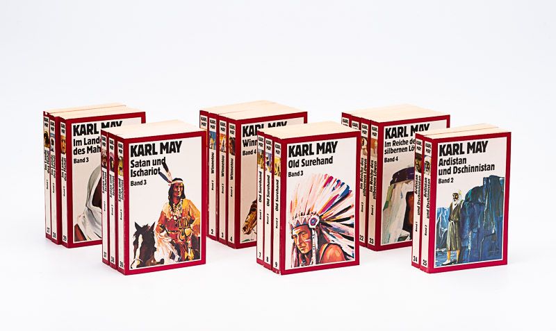 Winnetou / Der Schatz im Silbersee / Weihnacht / Old Surehand / Der Ölprinz / Helden des Westens / Durch Wüste und Harem / Durchs wilde Kurdistan / Von Bagdad nach Stambul / In den Schluchten des Balkan / Durch das Land der Skipetaren / Der Schut / Orangen und Datteln / Am Jenseits / Im Reiche des silbernen Löwen / Ardistan und Dschinnistan / Die Sklavenkarawane / Im Lande des Mahdi / Auf fremden Pfaden / Und Friede auf Erden / Der blaurote Methusalem / Am stillen Ozean / Am Rio de la Plata / etc. etc.