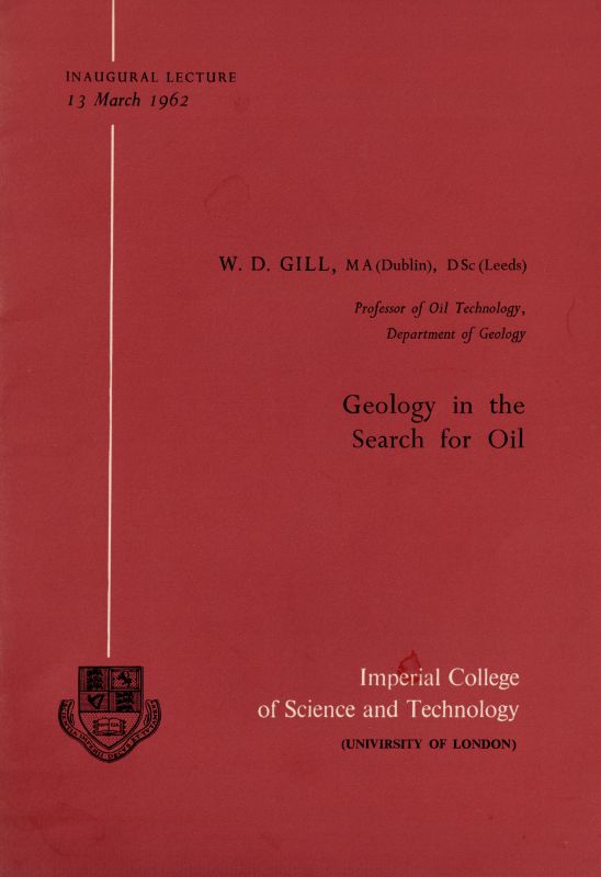 5. [Geology, General] – W.D.Gill – “Geology on the Search for Oil” [Inaugural Lecture as Professor of Oil Technology on March 13th, 1962] – Includes seven [7] pages of manuscript notes by Dave Naylor on the subject of this work.