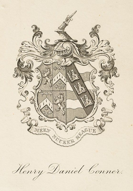 London, Published by B. Steill, 1828. Small Octavo. 372 (of 378 pages with six pages missing from the Postscript). Hardcover / Private half – leather-binding. From the library of Daniel Conner & Henry Daniel Conner (Connerville / Manch House), with the Exlibris / Bookplate of Henry Daniel Conner to pastedown. Two additional names written inside the book. The rarest publication by Roger O’Conner, who wrote under the pseudonym “Captain Rock”, in which much of his families history and its connection to Irish History is revealed. The publication is full of autobiographical detail on Roger O’Connor and his family and Biographical History of Nobility and minor Nobility during O’Connor’s time. Roger O’Connor explains in a form of a biographical Dictionary within the book the many different functions and historical details of Earls, Marquis’, Viscounts and other men of merit in Ireland at the time.