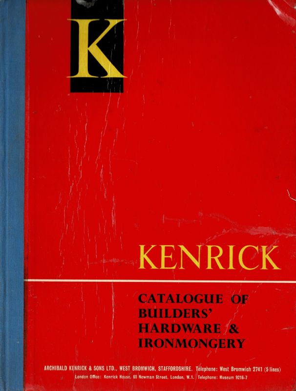 West Bromwich (Staffordshire), Archibald Kendrick & Sons, Ltd., 1962. Quarto. 60 pages. With numerous illustrations of Items throughout the catalogue. Original Hardcover. Slightly dusty. But the overall condition of the catalogue is indeed very good, with only minor signs of wear. Very Rare Historical Catalogue !