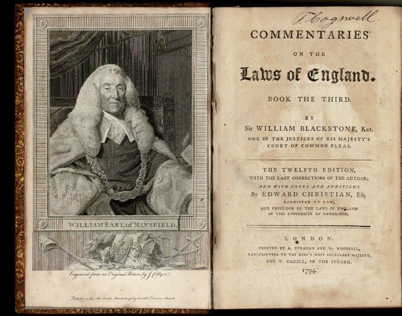 Christian is also known for producing the twelfth edition of the Commentaries on the Laws of England, including Christian’s notes and additions to what William Blackstone had written. The twelfth edition was published in several volumes from 1793 to 1795. (Wikipedia)