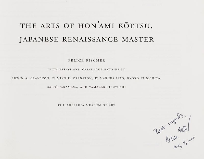 The Arts of Hon’ami Koetsu, Japanese Renaissance Master. [RARE SIGNED / INSCRIBED]. With Essays and Catalogue Entries by Edwin A. Cranston, Fumiko E. Cranston, Kumakura Isao, Kyoko Kinoshita, Saito Takamasa and Yamazaki Tsuyoshi.