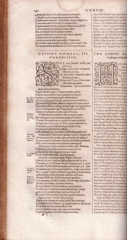 Poetae Graeci Veteres Carminis Heroici Scriptores, Qui Extant, Omnes / Homerus [Iliad and Odysseae Bilingual in Greek and Latin], Hesiodus, Orpheus, Callimachus, Aratus, Nicander, Theocritus, Moschus, Bion, Dionysus, Coluthus, Tryphiodorus, Musaeus, Theognis, Phocyclides, Pythagorae aurea carmina cum fragmentis alioru, Apollonius Rhodius, Oppianus, Cointus, Smyrnaeus, Nonni Dionysiaca. Apposita Est E Regione Latina Interpretatio. Nota item & variae lectiones margini adscriptae, Cura & recensione Iac. Lectii V.CL [Jacobi Lectii]. Accessit & Index verum & verborum locupletissimus. / [Dedication: “Illustrissimo et Potentissimo Principittera Ac D. Domino Mauritio Landgravio Hassiae, Comiti In Katzenelnbogen, Dietz, Zigenhaim [Ziegenhain], Nidda, &c. Domino suo Clementissimo].